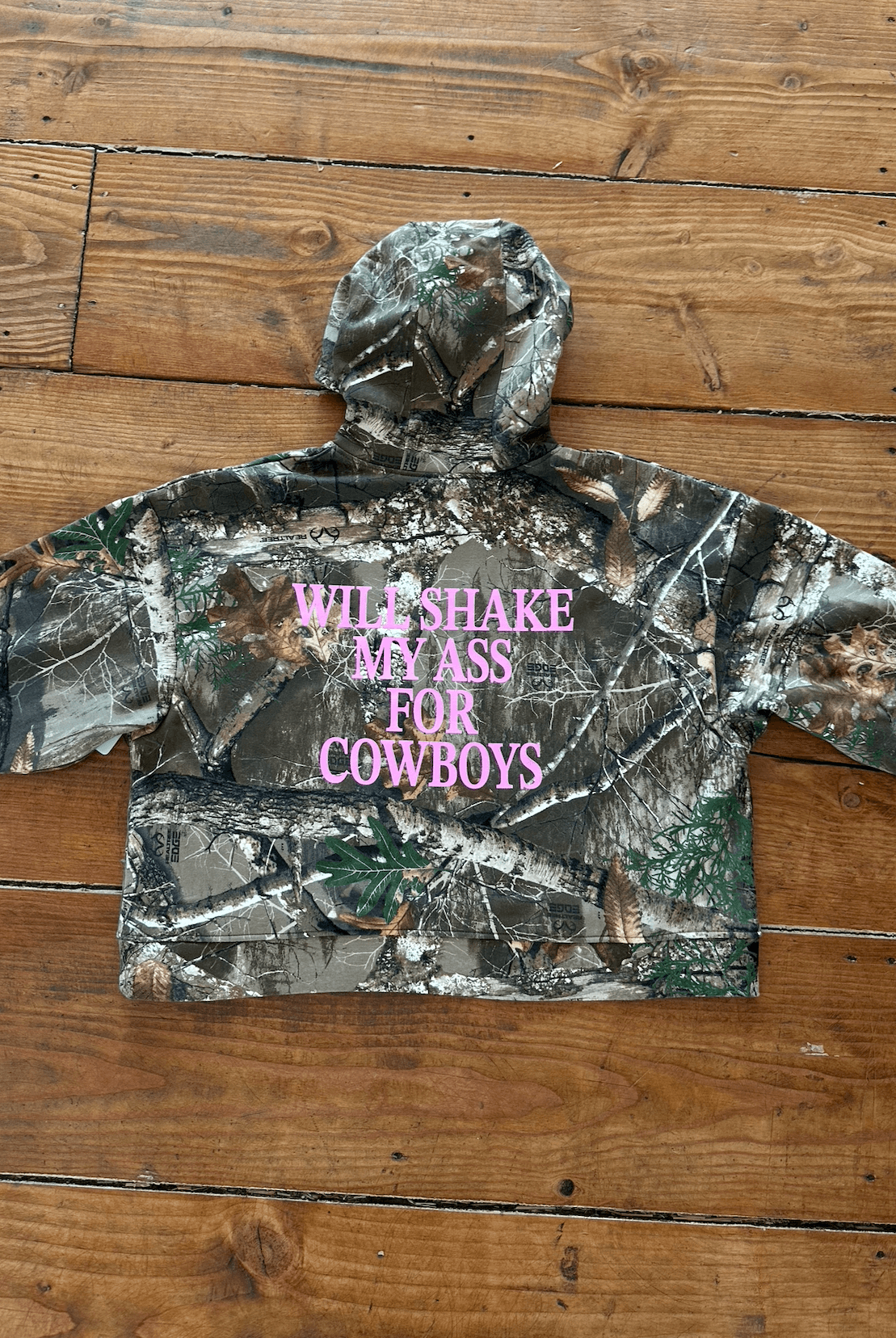 PINK "Will Shake My Ass For Cowboys" Cropped Camo Hoodie