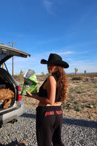 Get cozy in the comfiest Cowboy Pillows®️ Black Sweatpants! Perfect for lounging, running errands, or styling with your favorite cowgirl gear.
