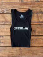 Our viral COWBOY PILLOWS®️ Tank top but in Black and White!! This "Concert" tank is a must-have for every cowgirl looking to turn heads and feel amazing. Handmade with love in the USA, this baby cropped, ribbed black tank features bold white wording and the trademarked COWBOY PILLOWS®️ slogan—perfect for showing off that western charm.