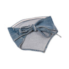 - Design: Bold white Cowboy Pillows print on denim with a tie-back closure for that perfect blend of style and comfort