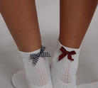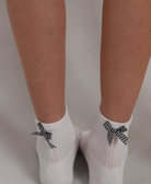 Add a touch of charm with these adorable Black Bow Socks! Perfect for adding a cute, feminine flair to any outfit, these socks feature a hand-sewn bow on the back for a fun, playful twist.