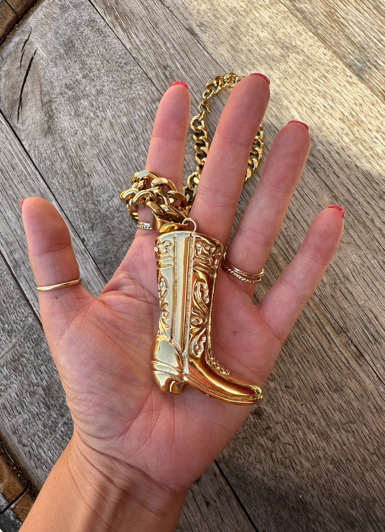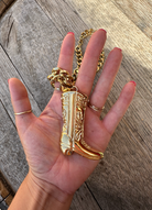 Make a statement and add some serious bling to your cowgirl look with our Cowboy Boot Necklace! This necklace is the ultimate accessory for anyone who loves to rock their cowboy spirit in style. Made with heavy-duty, 18K gold-plated stainless steel, it’s 100% water-resistant—so you can take it to the ocean, pool, shower, or anywhere your adventure takes you!