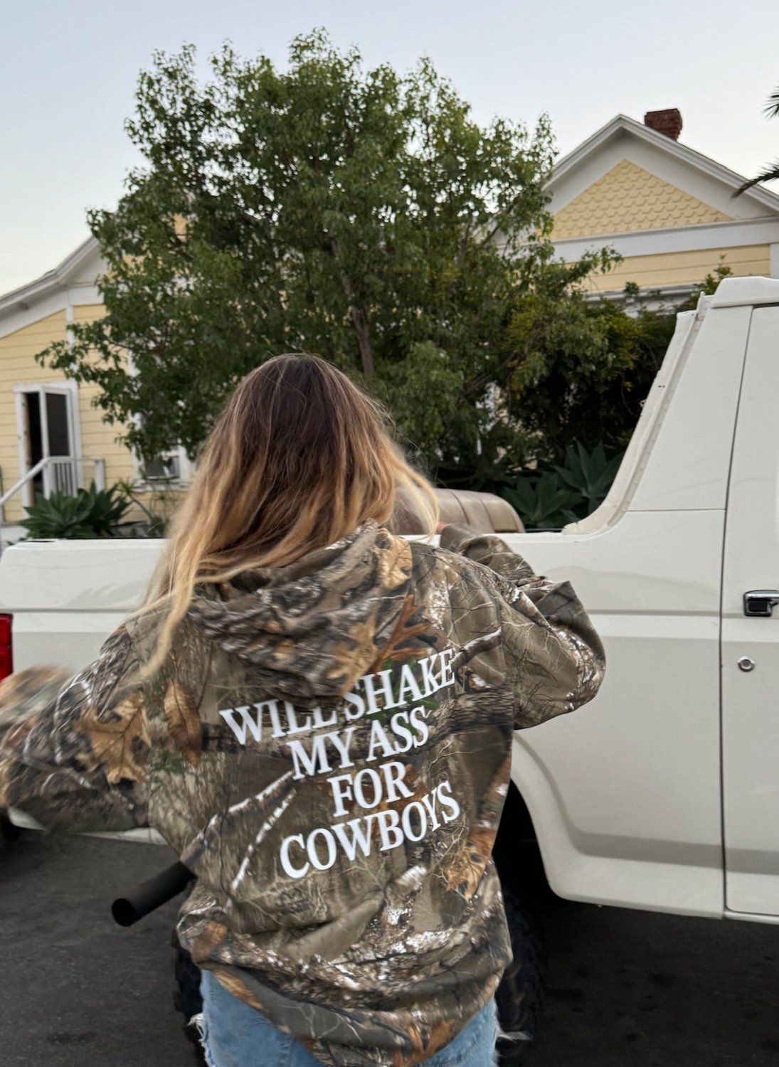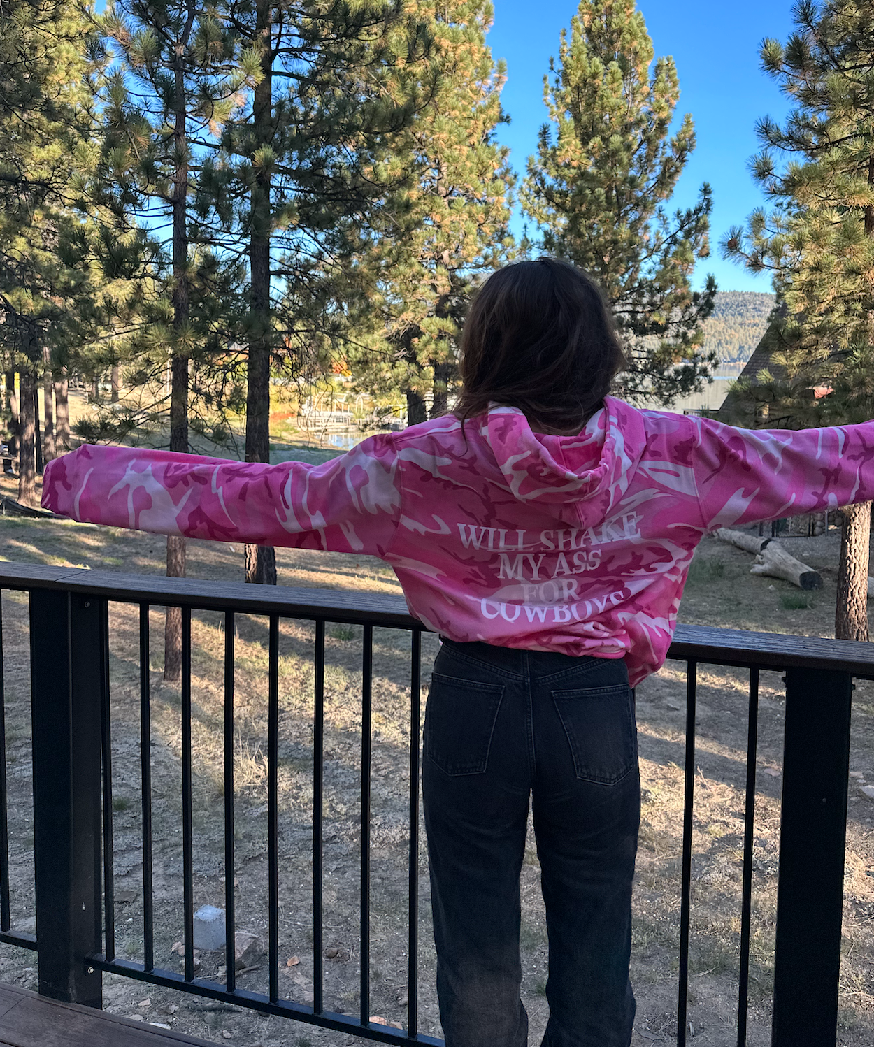 "Will Shake My Ass For Cowboys" Pink Camo Hoodie