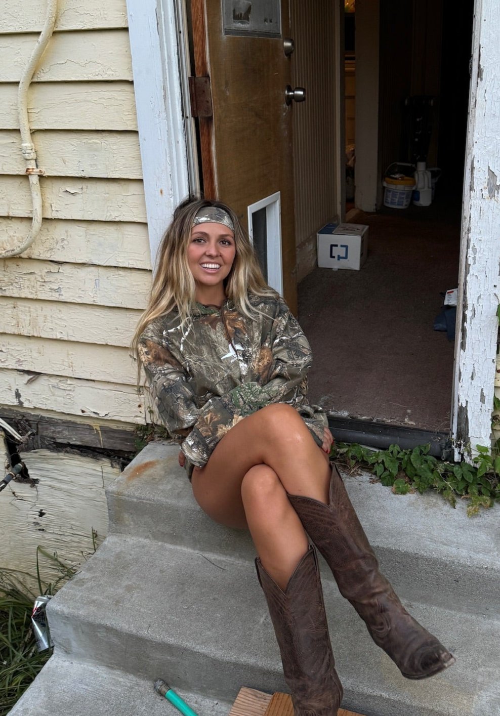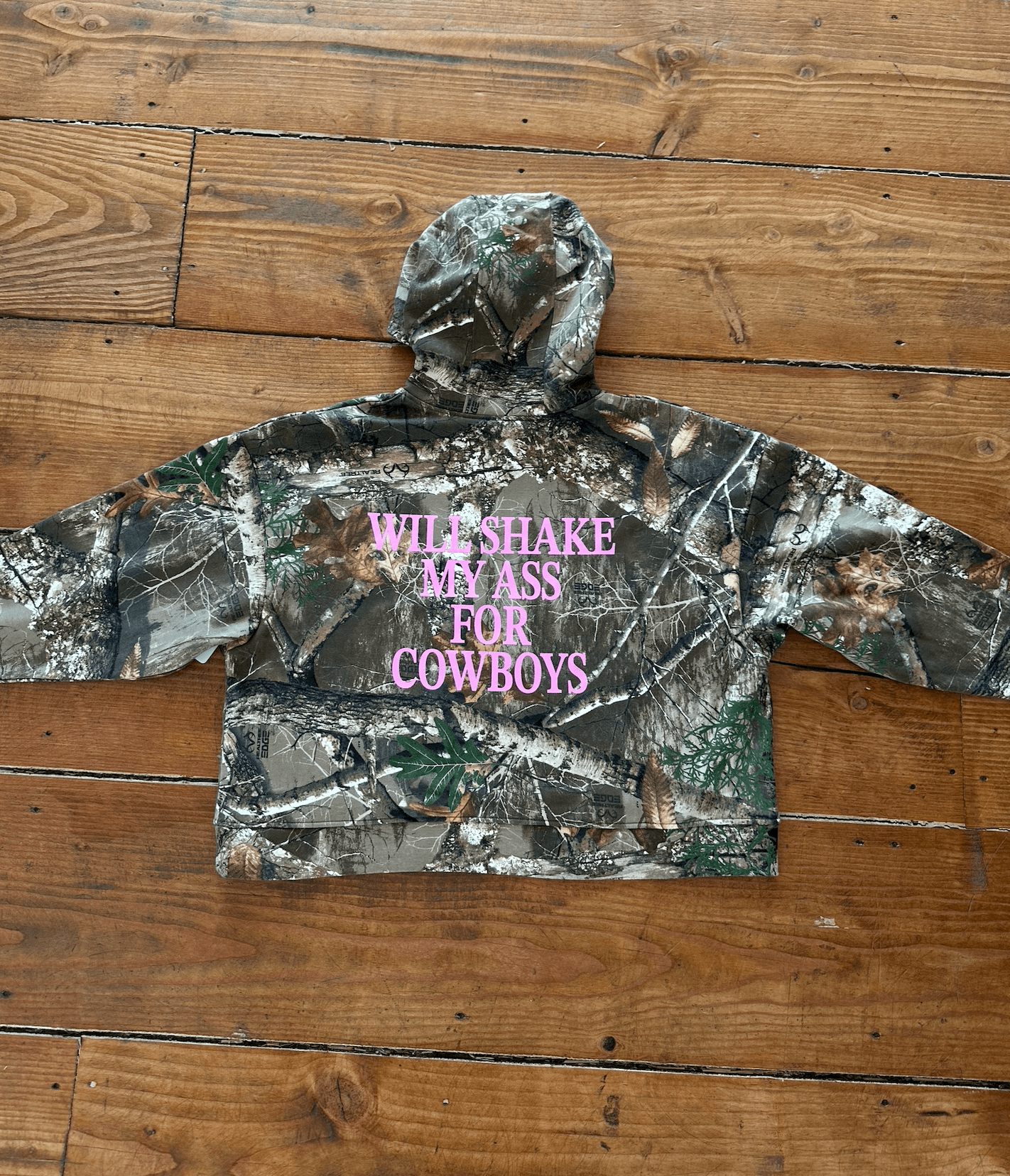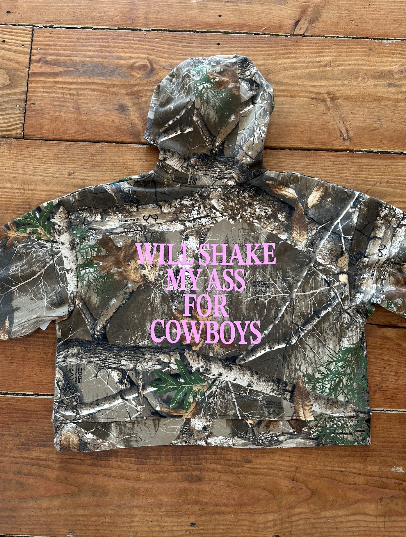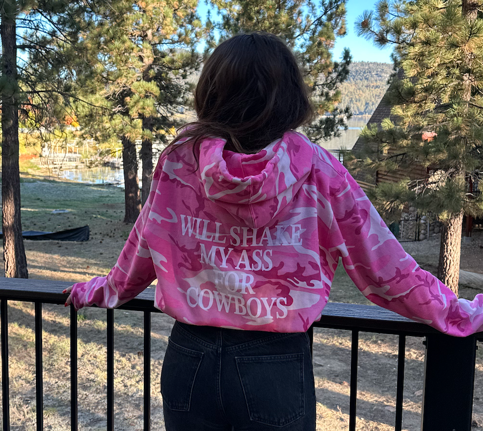 PINK "Will Shake My Ass For Cowboys" Cropped Camo Hoodie