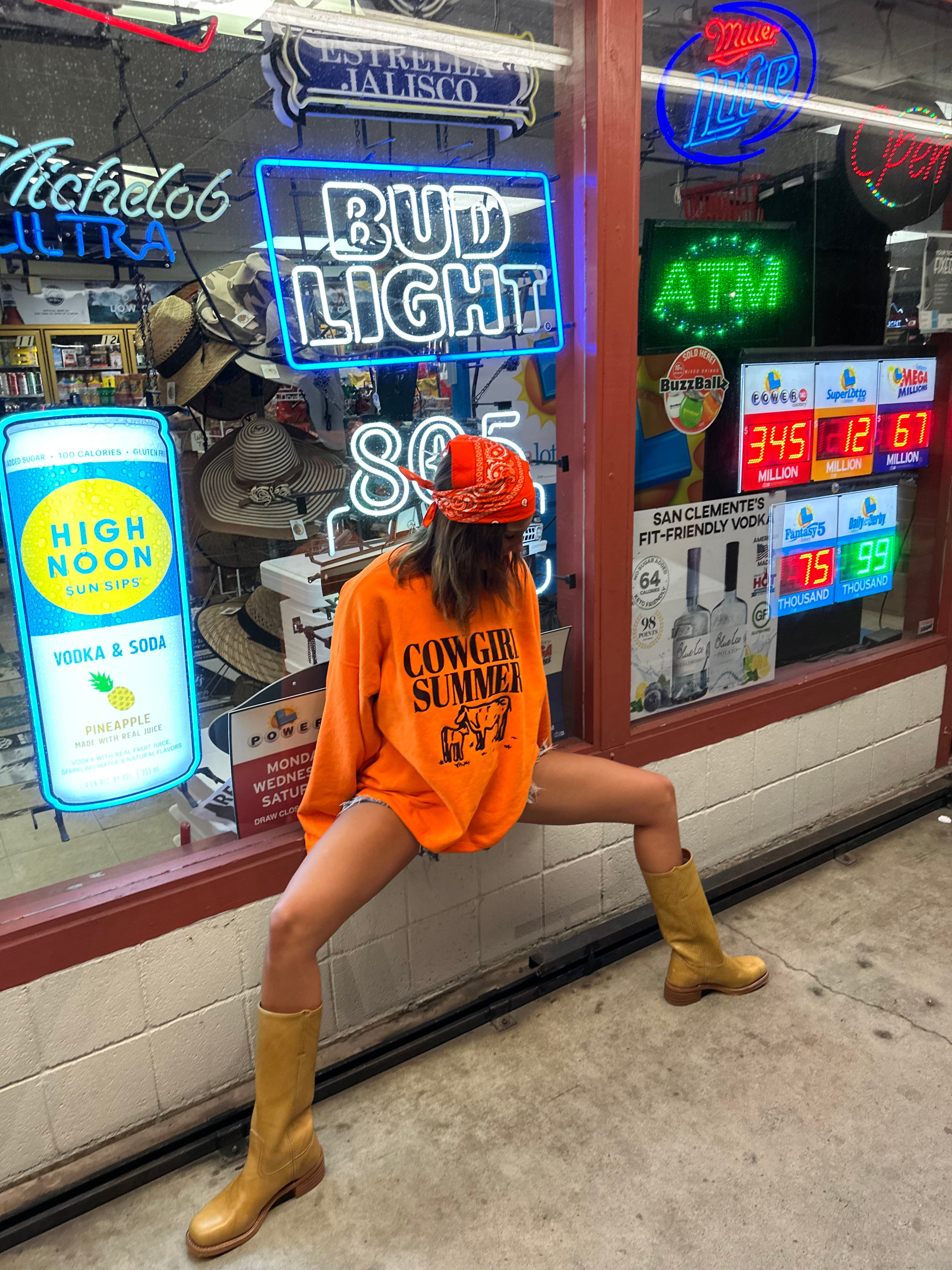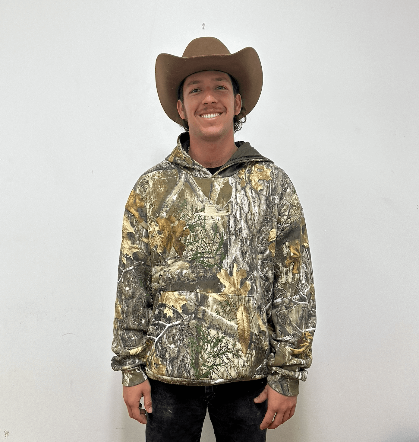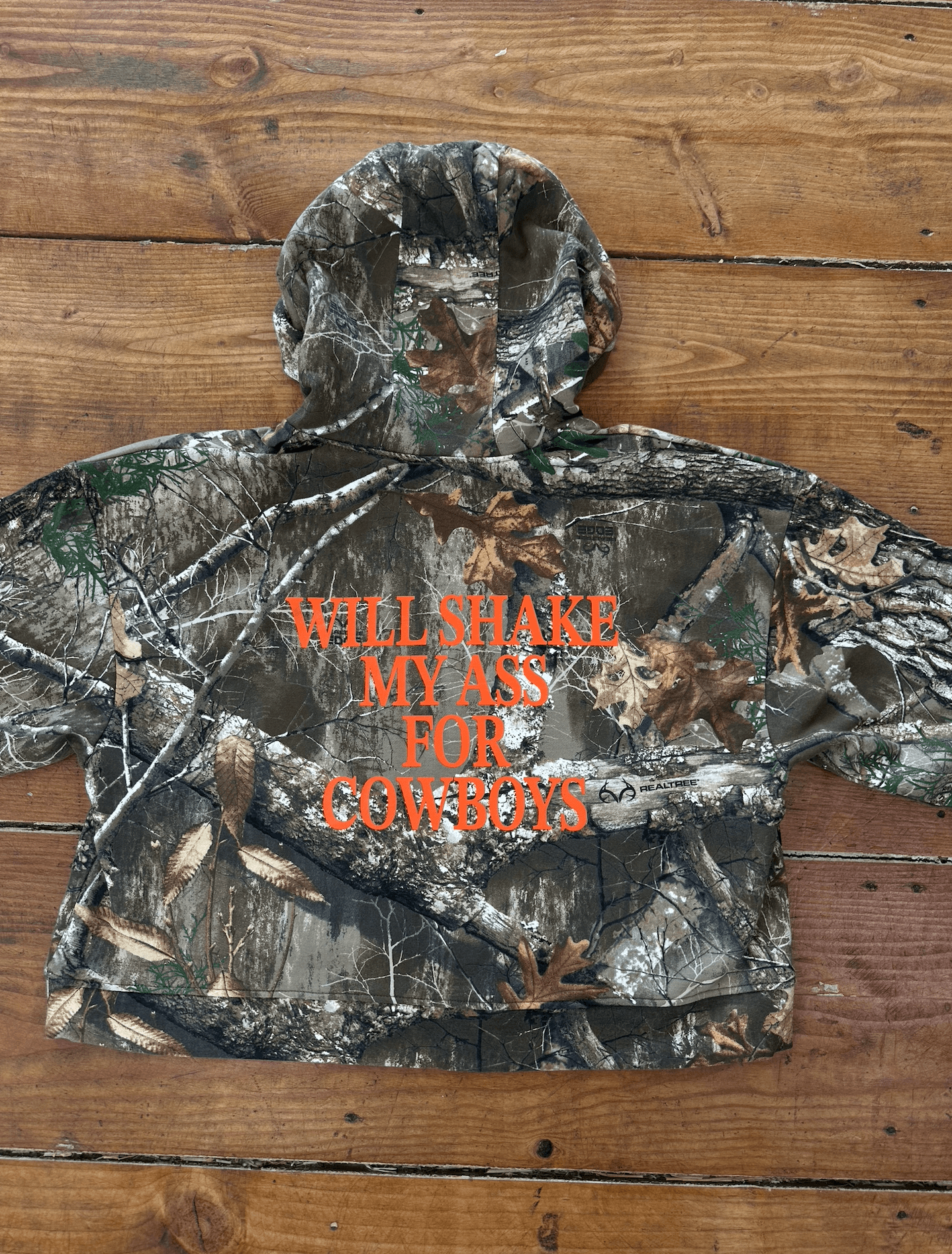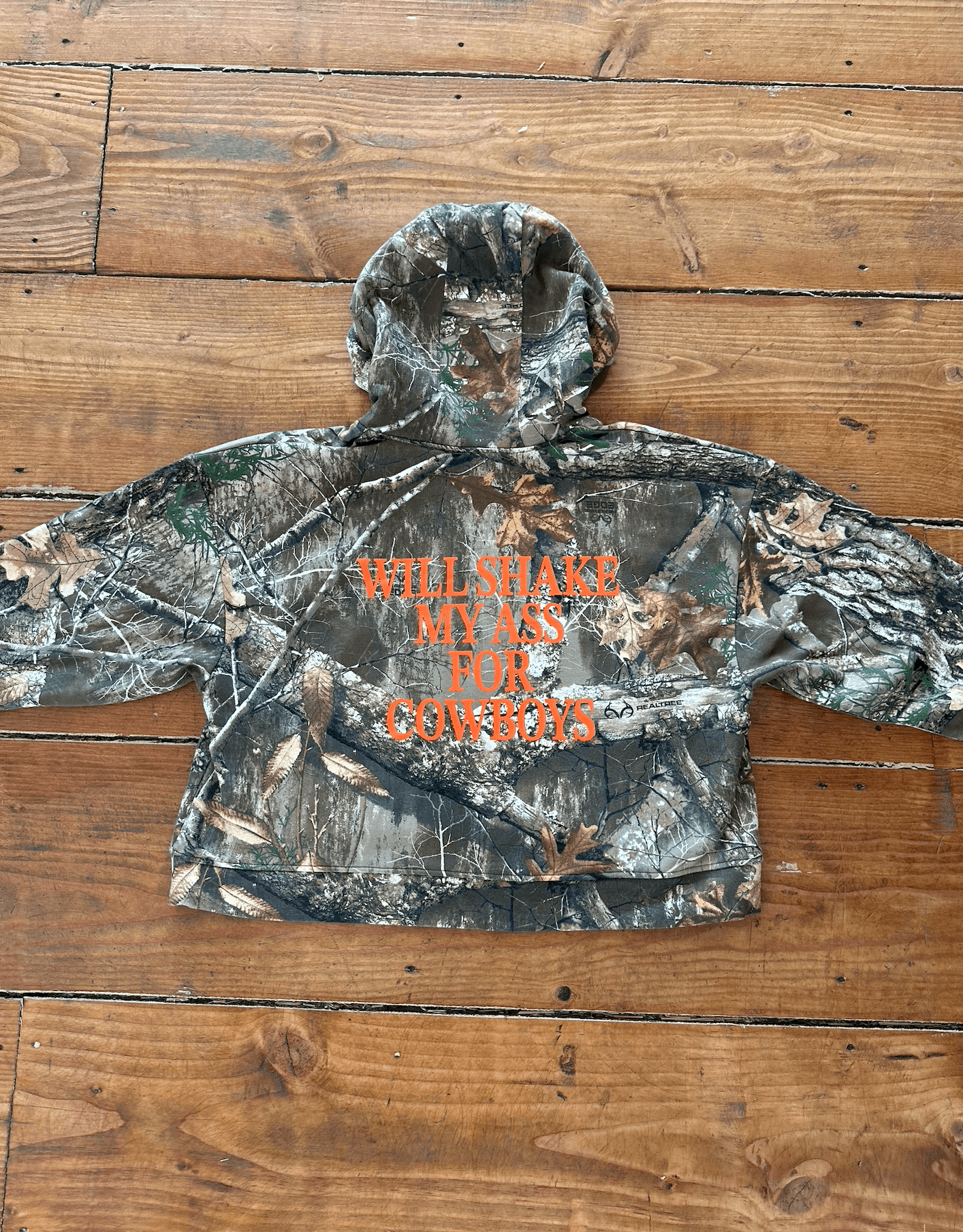 ORANGE "Will Shake My Ass For Cowboys" Cropped Camo Hoodie