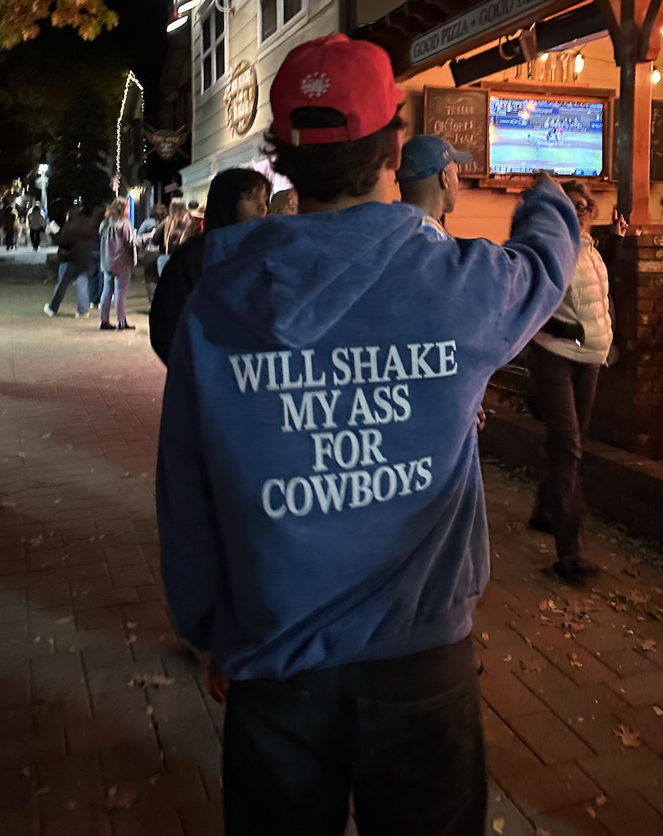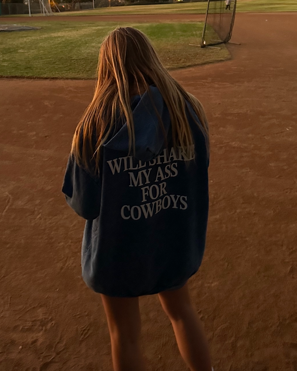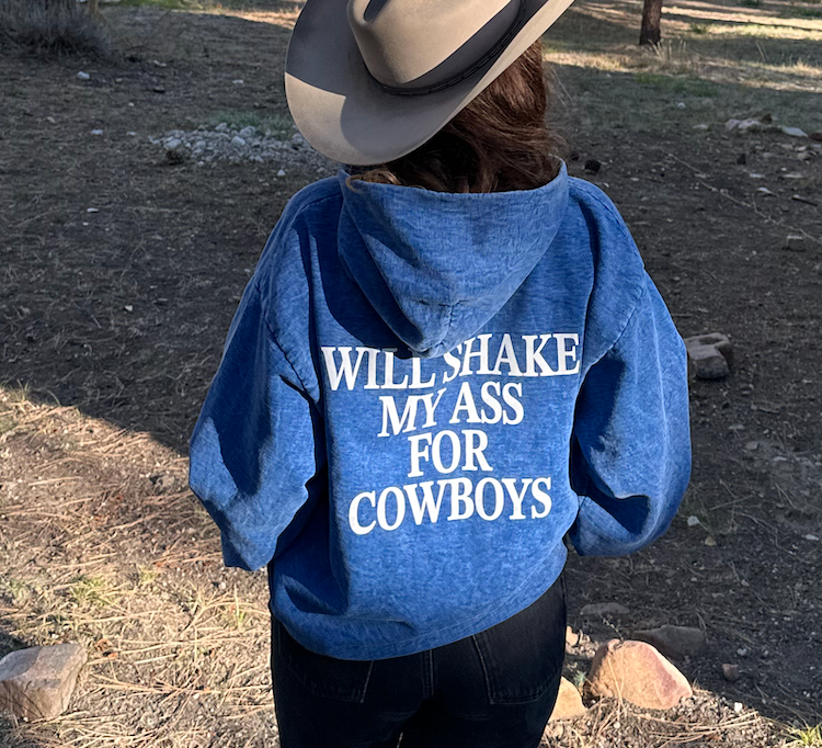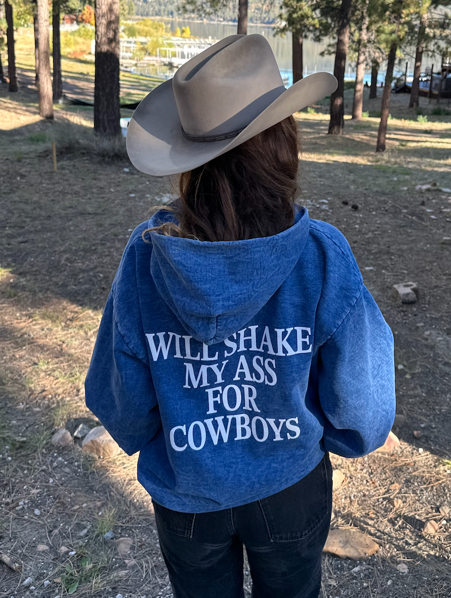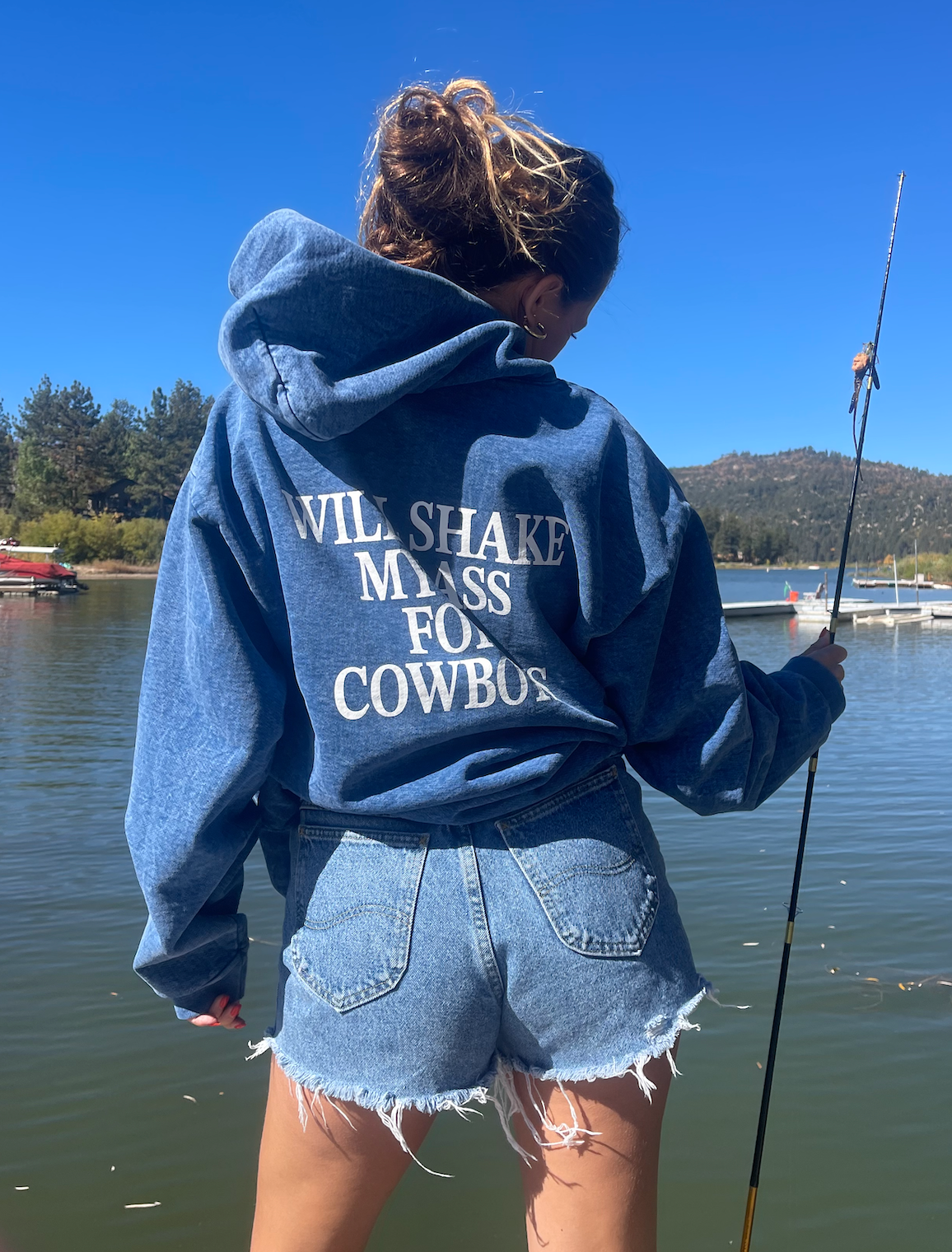 "Will Shake My Ass For Cowboys" Washed Blue Hoodie