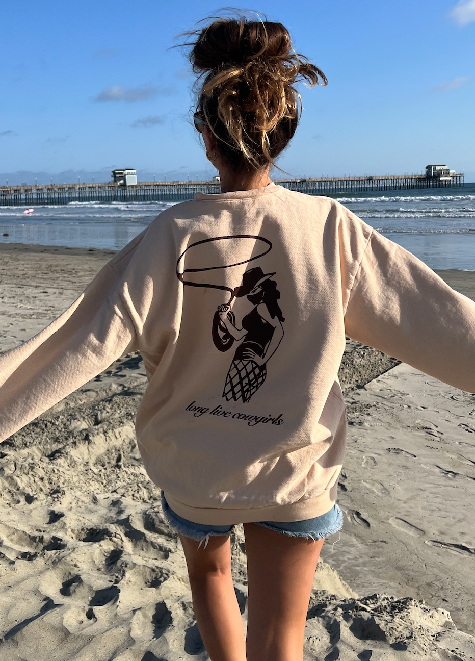 Celebrate your cowgirl spirit with our Long Live Cowgirls Crewneck! This crewneck speaks for itself, embodying the heart of the Cowgirl Era—perfect for coastal cowgirls, rodeo fans, or anyone rocking that wild west vibe.