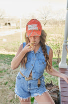 Add a pop of color to your outfit with our Orange Buckin' Cowgirl Trucker Hat! Featuring a bold buckin' cowgirl design, this hat is perfect for keeping the sun off your face while you ride in style.